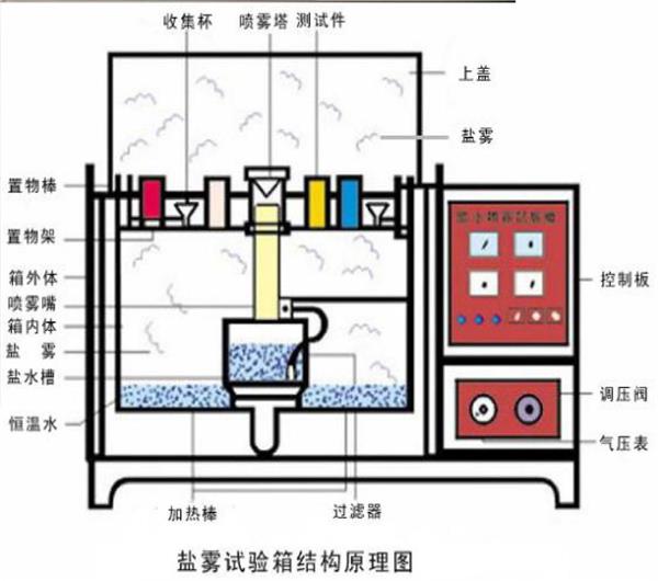 鹽霧腐蝕試驗箱為人工氣候環境“三防”(濕熱、鹽霧、霉菌)試驗設備之一,是研究機械、國防工業、輕工電子、儀表等行業各種環境適應性和可靠性的一種重要試驗設備。該鹽霧腐蝕試驗箱可做中性鹽霧腐蝕試驗(NSS),同時也可以做醋酸鹽霧腐蝕試驗(ASS)和銅加速乙酸鹽霧腐蝕試驗(CASS)。鹽水噴霧試驗主要針對各種材質之表面經涂料、電鍍、陽極處理、防銹油等防腐蝕處理后,測試產品的耐腐蝕能力。
